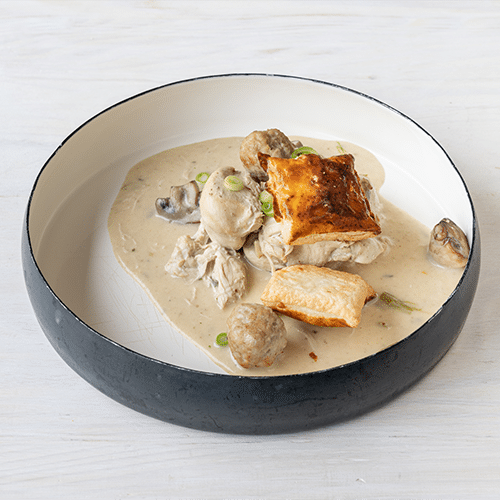 Champignons de paris entiers, Cognac, crème culinaire, persil.